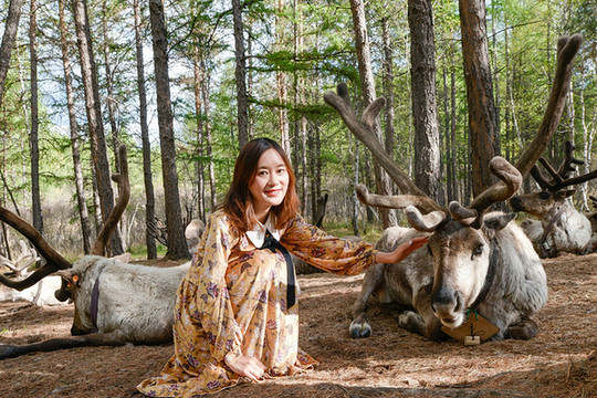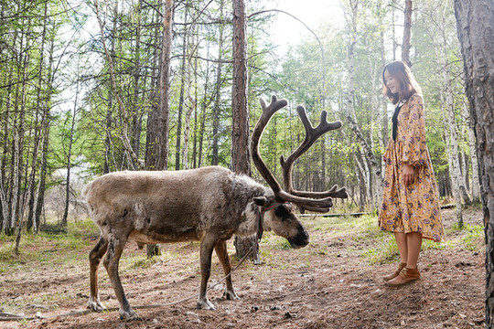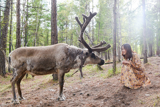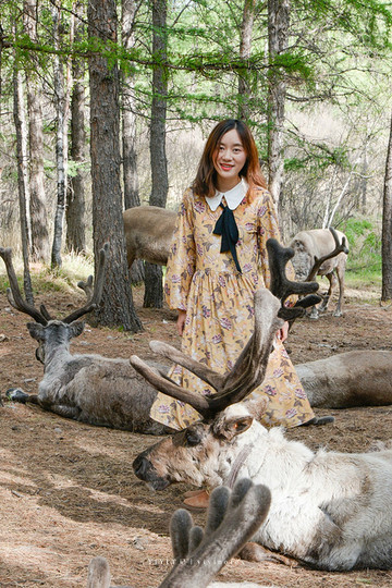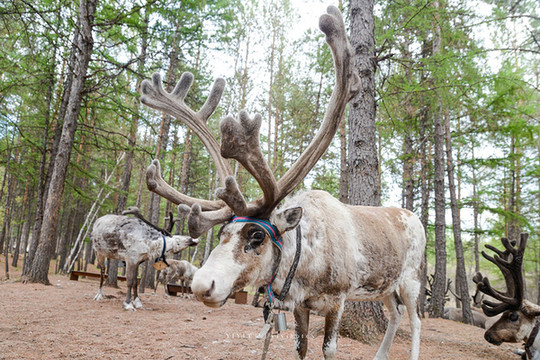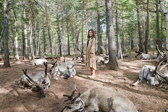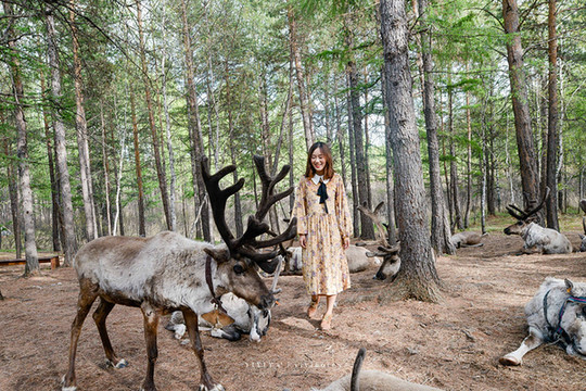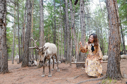 呆萌的驯鹿都是散养的,在林子四处都能发现它们,刚好我去的时候它们都集中在一片地方。关于它们还有一种说法,它的脑袋似马而非马,头上的角似鹿非鹿,身材像驴子但非驴子,四个蹄子像牛又非牛,也就是通常我们说的“四不像”。