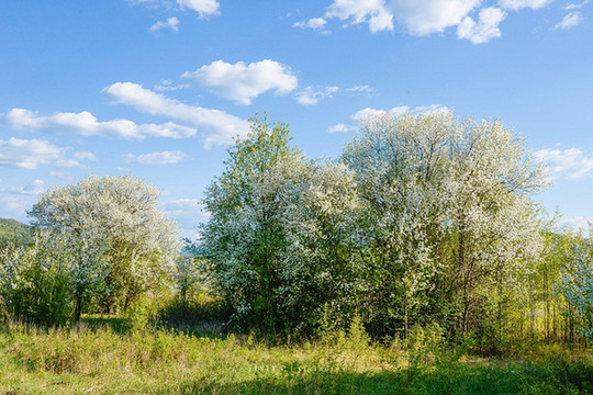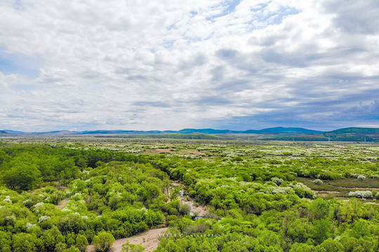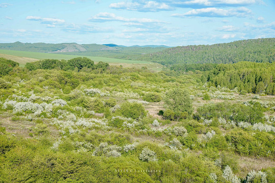 路边大片白色山丁子花,生长于 大兴安岭 中的一种花,还真是第一次见,有点像是李花,这个季节正是盛花期,白色的一片非常的梦幻。