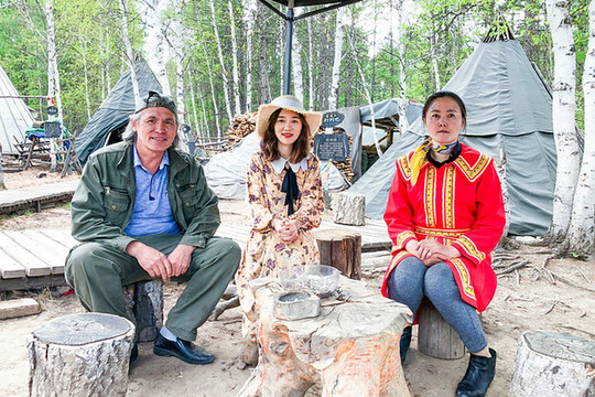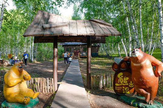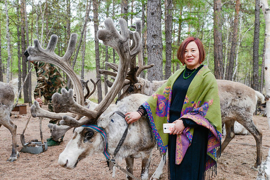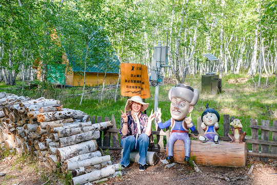 有幸和使鹿部落景区的园长和园长夫人一起合影,听说他在当地的名气可不小,很多名人来这里也会和他合影。