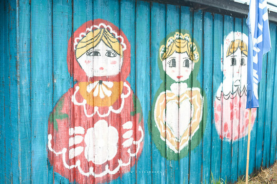 不过下雨的天气依旧不能阻挡我们,来到一户 俄罗斯 人家家访,家门口画着可爱的套娃。