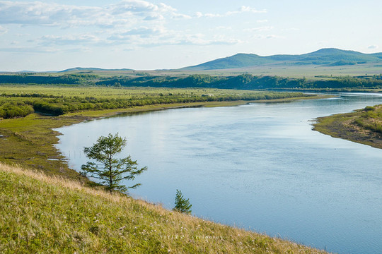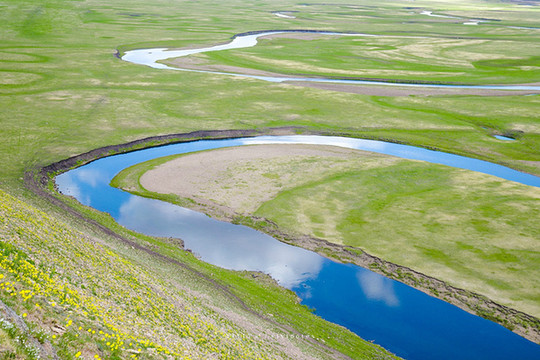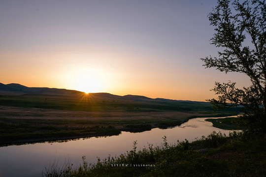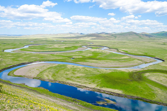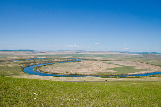 继续行车来到莫日格勒河,弯弯曲曲的河流,流经一望无际的草原,一直蜿蜒到远方,平静的可以看到天空倒影,望着这弯流水,内心却感到无比平静。