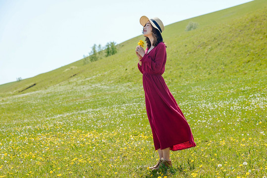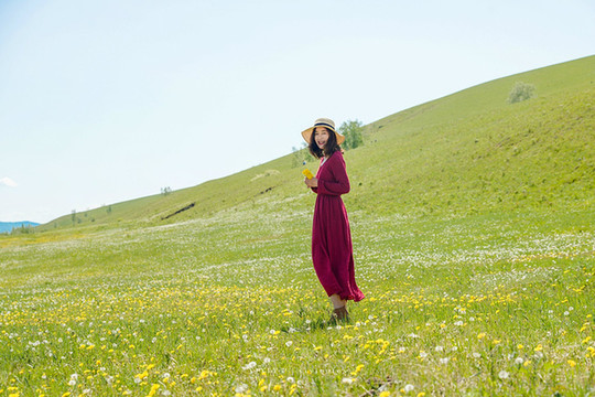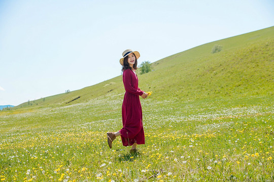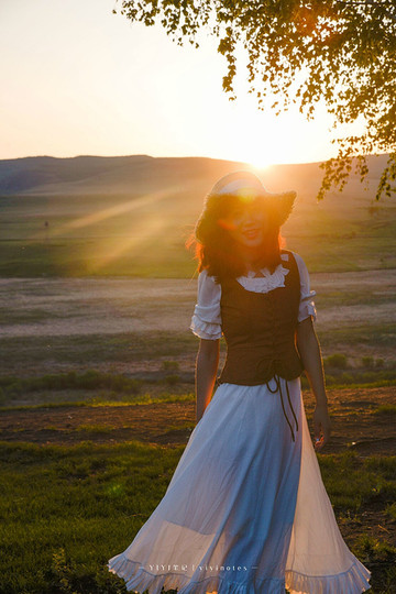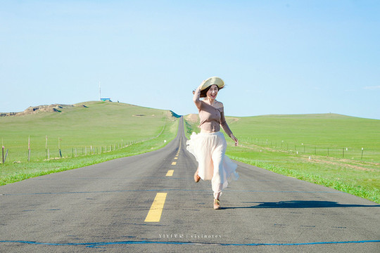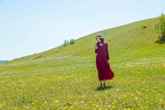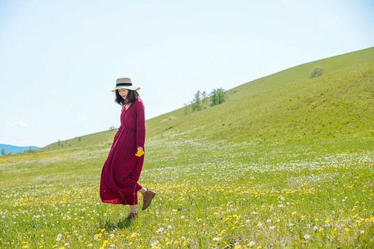 不过草原上的山头风都特别大,请看我飘逸的裙子自行感受一下。