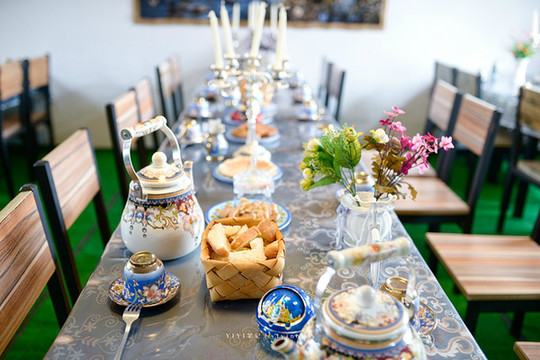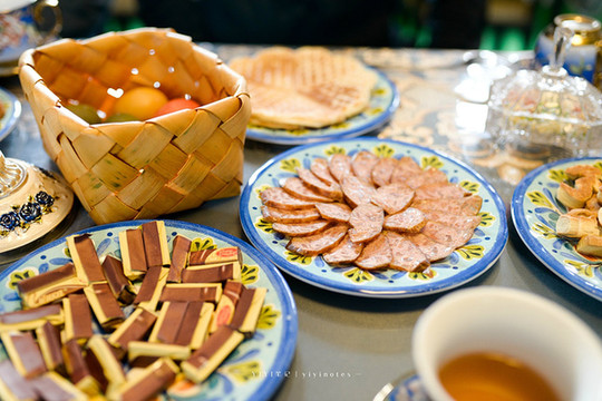 进屋之后满满一桌丰盛的美食,都是 俄罗斯 的一些特色小点心,巧克力、饼干、红肠、彩蛋等等,小饼干特别好吃,浓郁的奶香味儿。