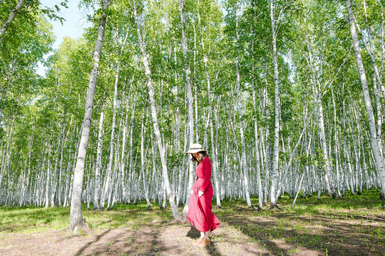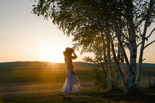 清晰的记得四年前来到这个山头,也有这几颗白桦树,夕阳下,站在白桦树边旋转跳跃。
