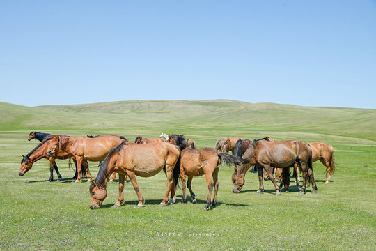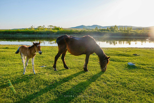 大马和小马都在安安静静的吃着草,我站在一旁完全不能打扰到它们,骄傲的脸色一点都不理会我,不过也是温柔的阳光下一幅非常唯美的画面。