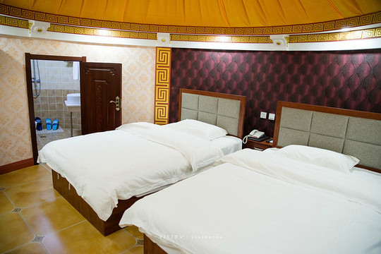 呼伦贝尔 草原上的特色 蒙古 包,外观都是 蒙古 包的外形,内部和我们平时住的酒店一样,只是卫生间的门偏矮,容易碰头。 蒙古 包有餐厅,晚上还有篝火晚会,如果没有月亮很适合看星空。