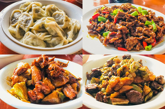 地道的 东北 家常菜,小炒羊肉、鸡翅烧红薯,红薯特别甜特别软,但又不是加糖的甜,反正特好吃,土豆炖排骨,还有我最爱的 东北 饺子,比我在 东北 吃的 东北 菜味道更好。