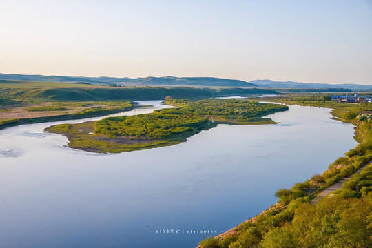 在七卡附近的山头,可以看到一幅太极八卦图, 额尔古纳 河流经的走向刚好形成了太极八卦图的形状,中间就用草原来填充,是不是很神奇。此处如果可以航拍就完美了,然而要时刻提醒自己这里是边境线。
