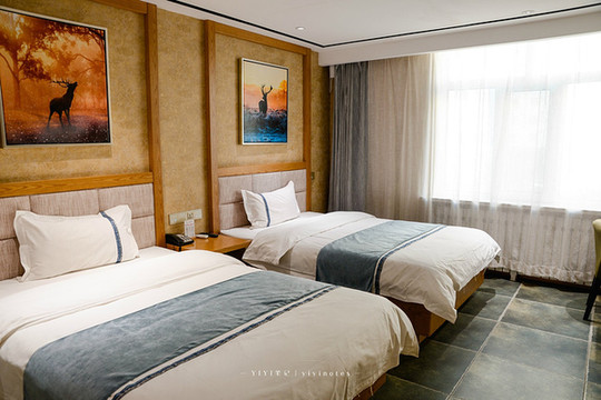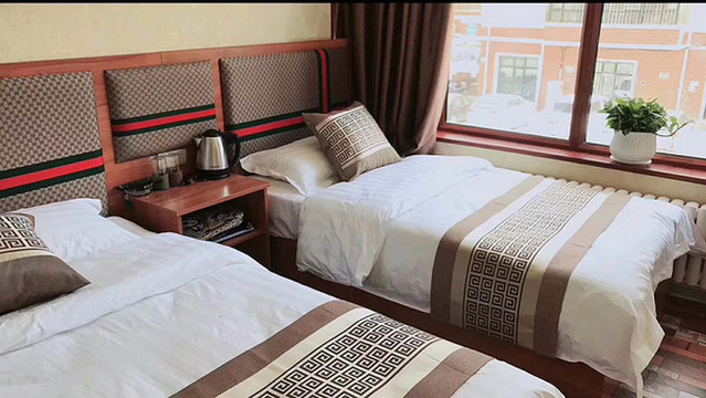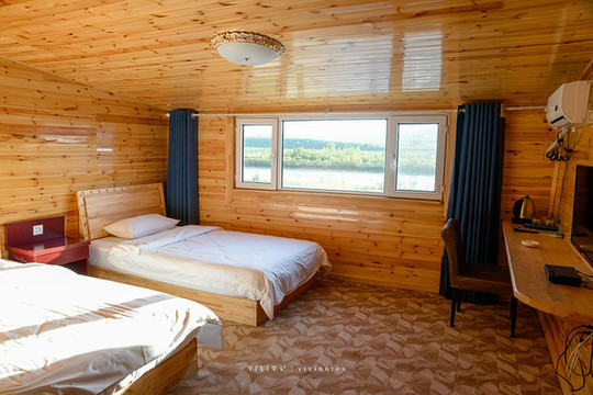 临江 镇上 额尔古纳 河旁边的一家客栈,客栈很大,房间里还能看到 额尔古纳 河的景色,唯一缺点是没有电梯,住楼上搬行李挺累的。不过我们的行李都是磊哥帮搬上楼的。