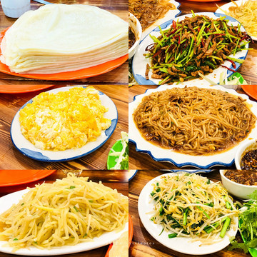 东北 的春卷,之前在 哈尔滨 吃过一直念念不忘,这次在 根河 也吃到了,和 哈尔滨 一样的味道。用薄薄的筋饼裹上炒菜,都是一些家常的 东北 炒菜,味道做的很不错,筋饼也很有韧性。