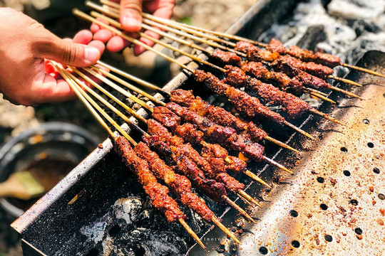 一边煮着羊肉,一边支起烤架开始烤牛肉串,这烤串儿的手艺也是没谁了。烤出来的牛肉不仅嫩,而且味道也是极好,完全符合我特挑的胃。