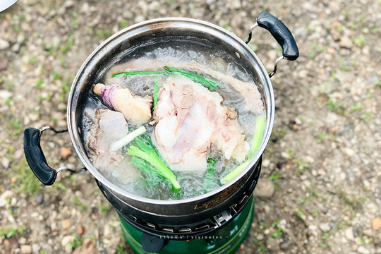 打开气炉,把矿泉水倒入锅里,再放入大块大块的羊肉,加入几根大葱,煮最原汁原味的手把羊肉。煮的咕噜咕噜的锅里,闻着都特别香。吃不惯北方羊肉的我,却最喜欢 内蒙古 的羊肉。因为 内蒙古 的羊肉基本上都是散养的,这样长大的羊的羊膻味就比较小,所以这里煮羊肉即使不加调料,煮出来的膻味也很小。