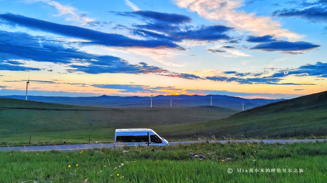呼伦贝尔 的雨来得快也去得快,我们刚好在酒店休息了会。大概下午6点左右,雨过天晴,涛哥又带着我们去看日落。