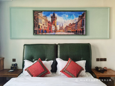这天入住的酒店也是俄式主题,规模虽不及尼基金,可也属于小而美的类型。房间精致温馨,床头挂着一幅 欧洲 油画,上面是 布拉格 老城广场的街景,熟悉的画面让我倍感亲切。