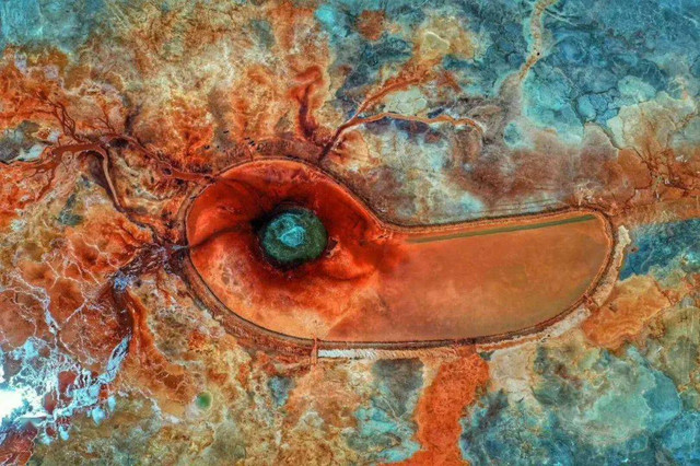 恶魔之眼艾肯泉仿佛一只镶嵌在大地上的眼睛,泉水直径10余米,不断喷涌,在周围形成五彩斑斓的环状沉淀物。关于艾肯泉具体成因、流量和化学成分的信息,至今都没有一个详细的科考结果,它的身世和神秘面纱下的茫崖市一样,是一个孤独的谜。