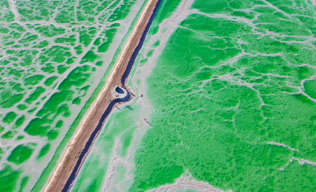 翡翠湖距离茫崖花土沟23公里,南靠“万山之祖”昆仑山,北依“中国四大无人区之一”的阿尔金山脉。“一片冰清玉洁的液态翡翠”,万千游人到此留下足迹后,如此形容这片美丽富饶的盐湖。