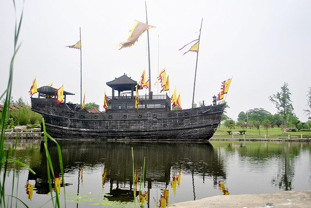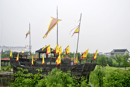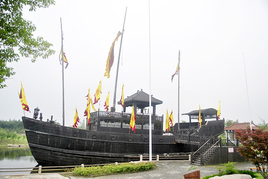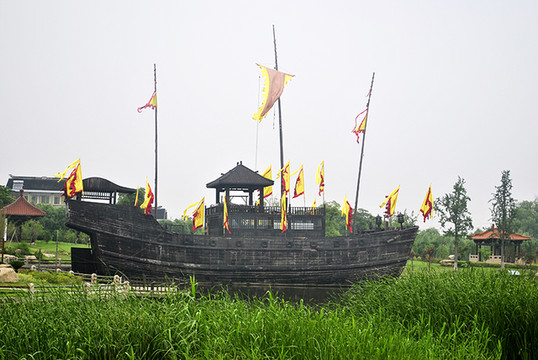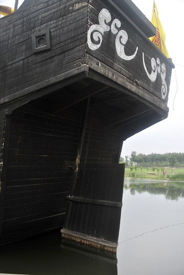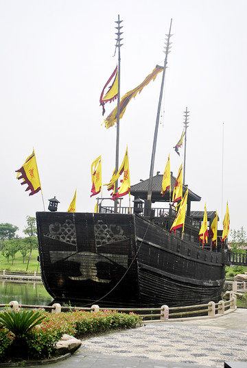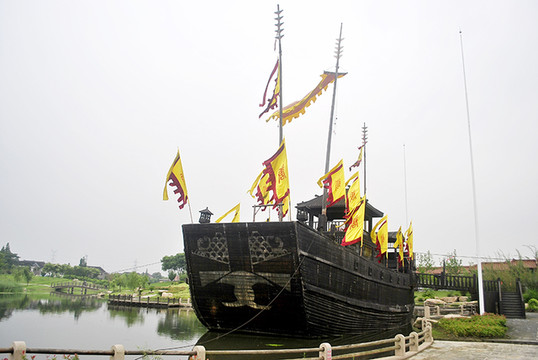 2005年,中央电视台为拍摄电视连续剧《鉴真东渡》特制此仿唐东渡古船。船体长32米,宽10米,高9米,桅高30米。2006年7月放置东渡苑,供观瞻游览。