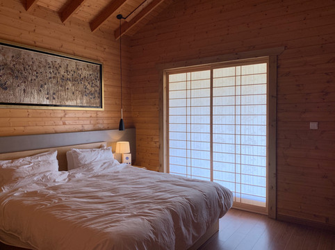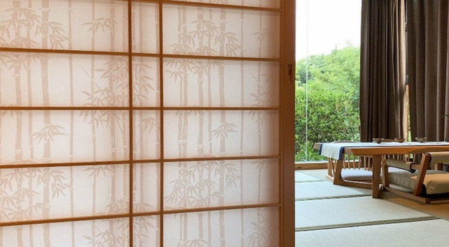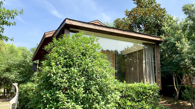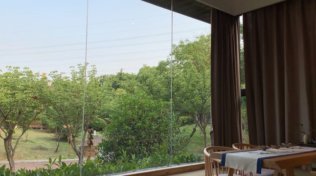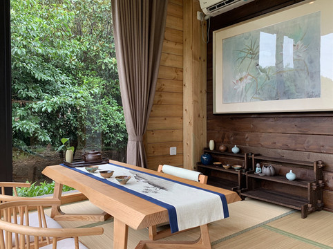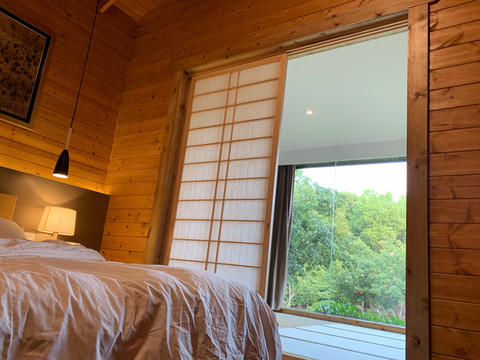 来到度假村内,看到酒店采用禅风设计理念。