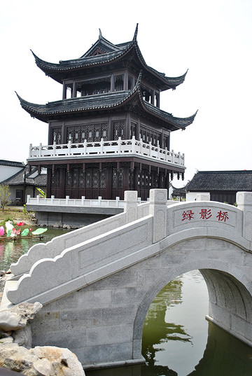 馆内有小河有小桥,这座绿影桥我记得几年前性感女星甘露露来这拍过一组古装照片。