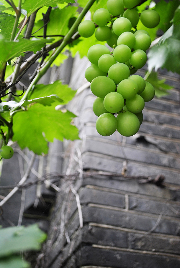 最后的院子中有一棵葡萄树,正挂着果子。
