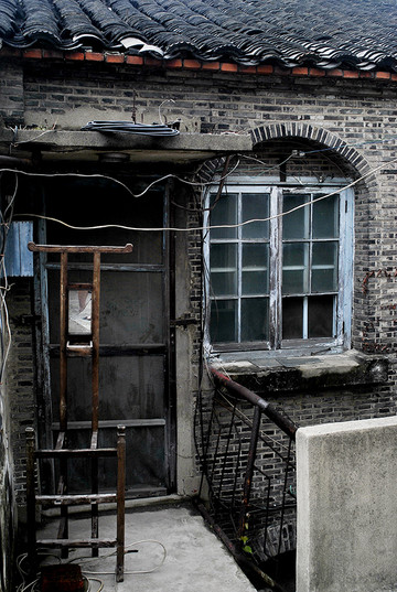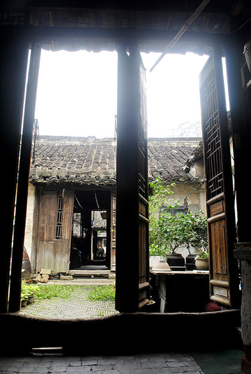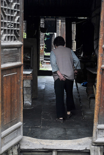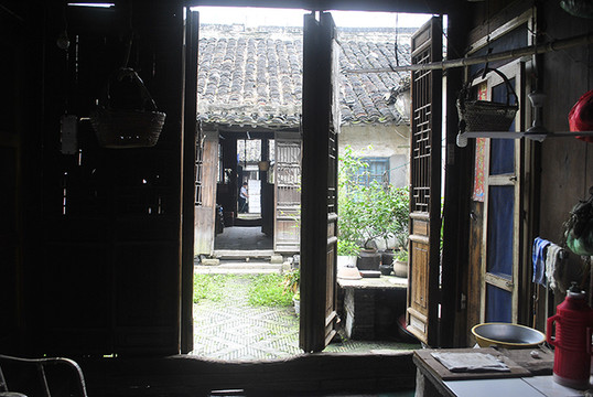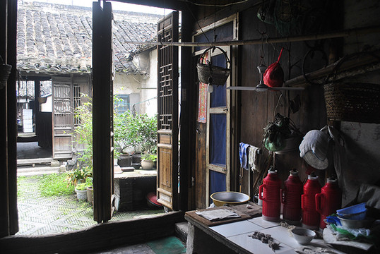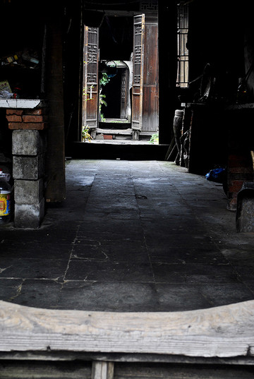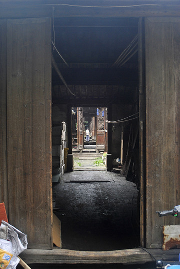 继续往后走,可以看出每个进间的木门槛都已被踩踏凹陷,这就是历史的积淀。房屋内壁均已破败不堪,光线阴暗,加上江南地区不可避免的潮湿,除了老年人年轻人是不高兴住这里的。