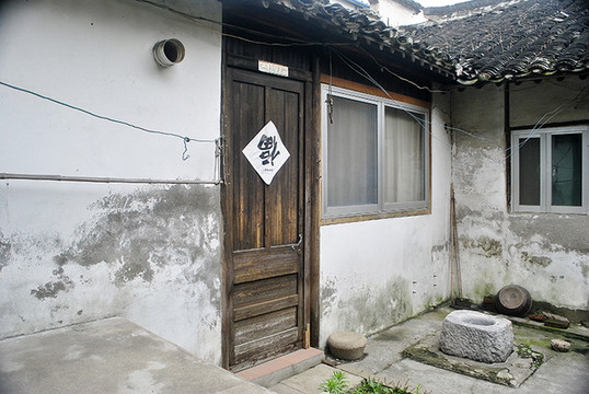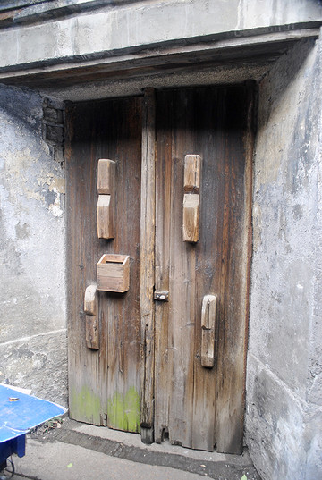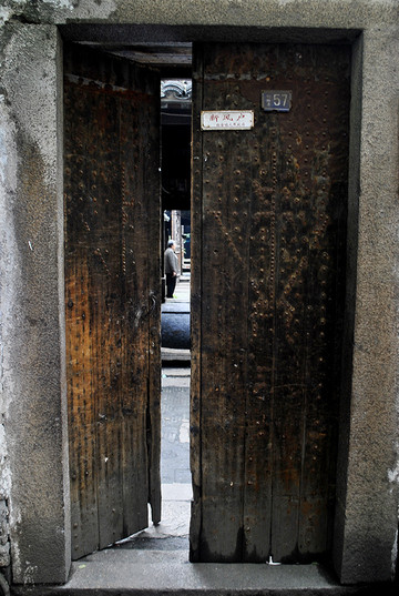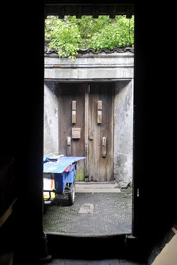 这是老宅唯一的大门背面,门一关,似乎门外的荣辱繁华皆与门内无关一样,老宅就这样静静地矗立在周遭的商业街中,处事不惊,无关风月,自成历史中的一栗。