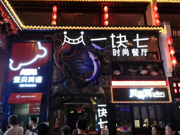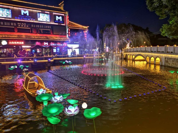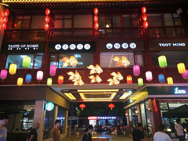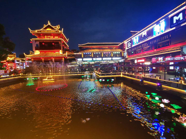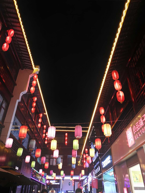 夜幕降临,又来到杨舍老街—— 一条商业街