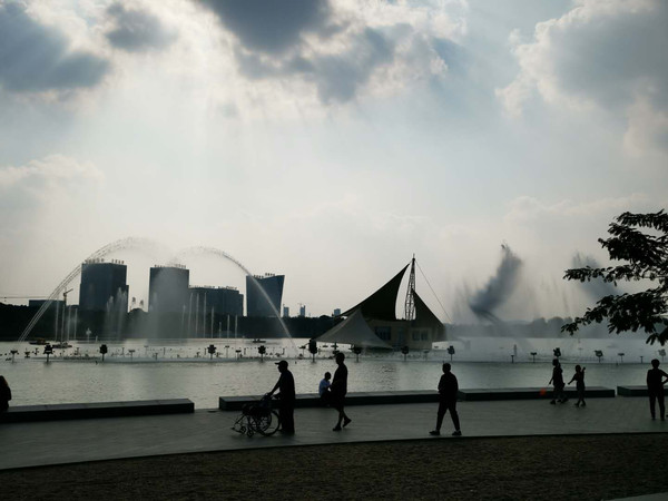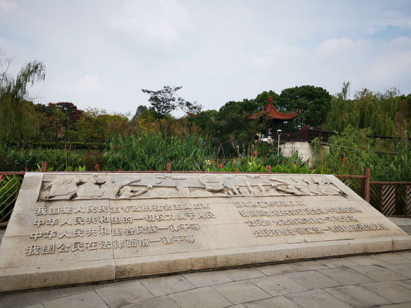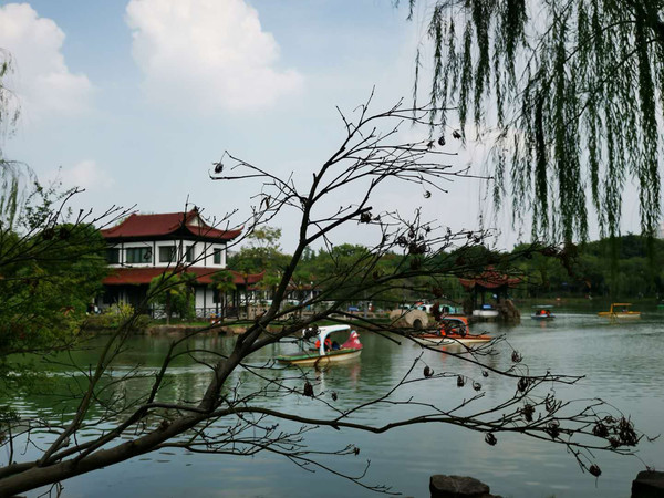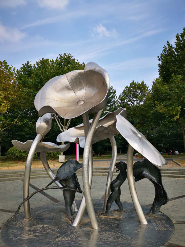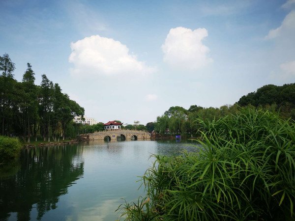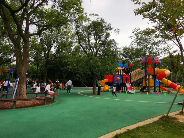 第二天大清早,打的到张家港公园 采用传统的造园方法,充分利用植物、山石、建筑、水体等造园要素,科学规划,合理布局,精心施工,着重在水体、山体和绿化三个方面做文章,绿化及水面占全园总面积87%,相应区域的建筑构筑物风格相对统一,点缀其间,既营造了自然、清新的绿色环境,又注重了文化内涵。