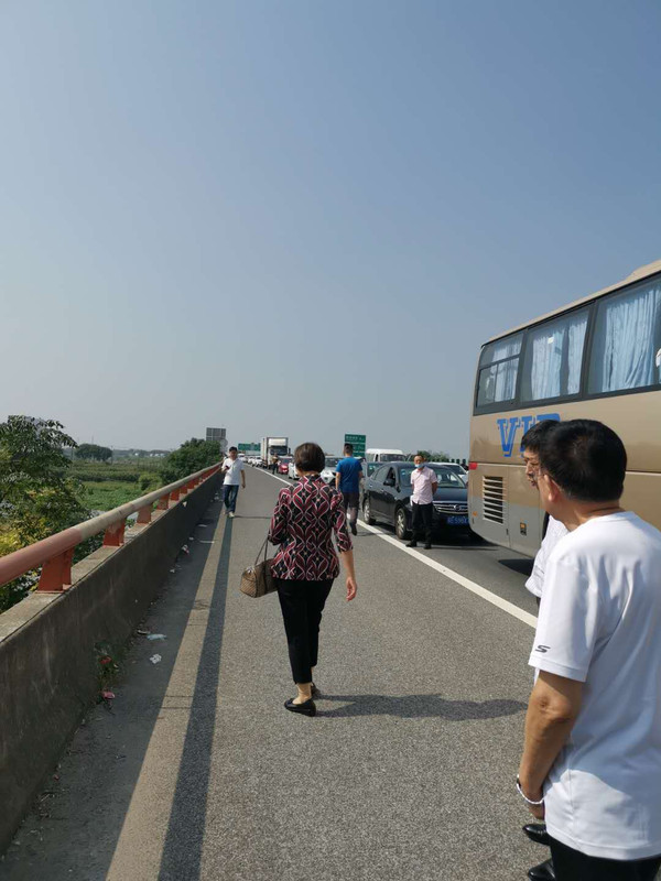 早早地出门,可还是遇上堵车。堵车时间实在太长,找地解决生理问题了——注意安全啊!