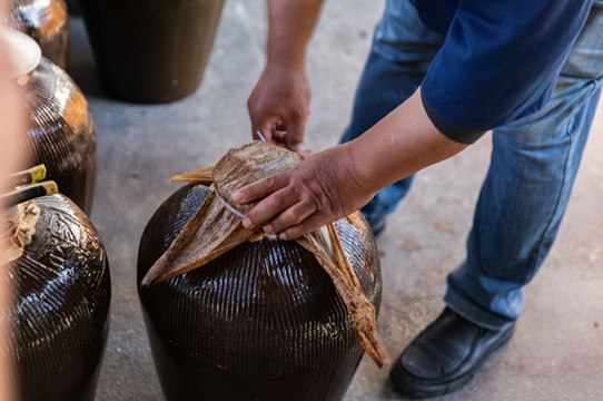 手工酿造车间保留了最传统的黄酒手工酿造工艺,我们可以亲眼目睹酿造过程,闻着空气中的酒香味继续前行就到了藏酒的地方了。