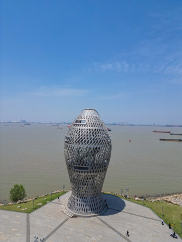 张家港 湾的鱼篓,外形选取了鲤鱼的形象,融合了 江南 鱼篓渔网的元素设计而成。寓意着长江流域的人们逆流而上、奋发向上的进取精神。