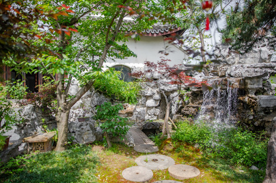 园林中的景观因巧妙的布局而融合在了一起。走廊、花园、假山、流水……形成了一幅淡墨写意的 中国画。
