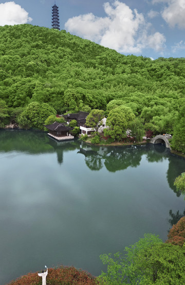 碧池映天镶嵌于山中,构成一幅湖光山色画卷。从景区入口走一小段就能看到湖了,在湖边散步,歇息,时间也变得慢了下来。