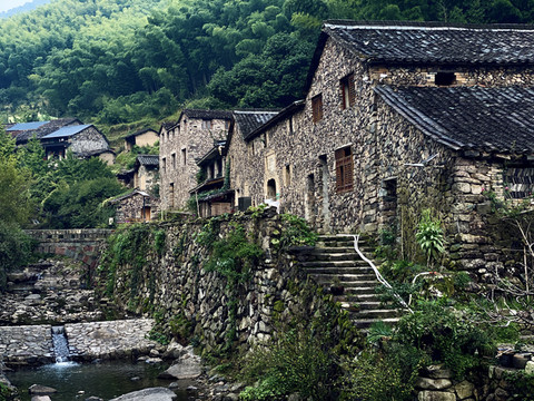 走在村子的石板路上,翠绿的竹林映掩着满眼石头堆砌的房子,寂静中只偶尔会有老人踯躅而行,连村里的小黄见了生人也懒得站起,瞥你一眼继续蜷缩檐下酣睡。