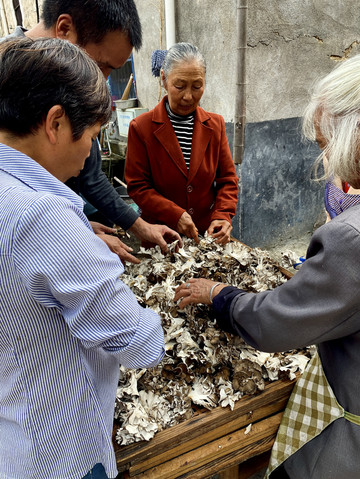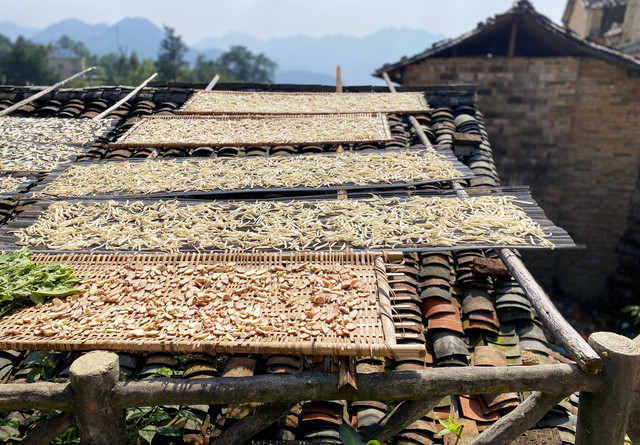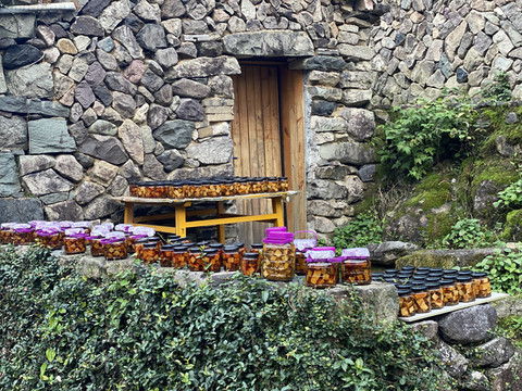 晚餐安排在名为小桥流水的民宿,家常做法的土鸡、溪鱼和卤水豆腐等鲜美之极。虽然山村地处高山僻壤,但随着乡村旅游开发,精品民宿也有不少,村头巷尾不时见到村民自制的腐乳、笋干等农产品摆放路边,游客可自行扫码购买。