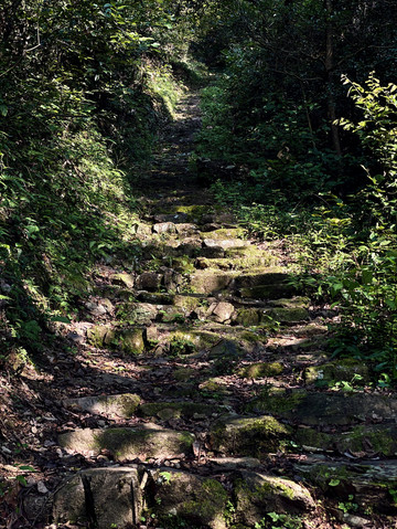 现在山区的道路都修得很好,基本都是柏油路面,行车穿行山中很是舒服。西坑村始于明代,位于松阳和武义两县交界处,坐落在海拔640米的山顶台地上,村子有一条北宋的松宣古驿道,至今保存完好。头上骄阳毒辣,匆匆看了村里的民居,较为普通,遗憾未能见到云雾缭绕的美景。向村民打听是否有廊桥,指曰沿着古道下山即可,一行人在已人迹罕至的古道上向山下行进了半个多小时,才堪堪到半山腰,隐约听见峡谷中溪流的水声,路边草丛树枝上有各种驴行俱乐部经过结的丝带路标,几人已经累得气喘吁吁,加上古道出现分叉,于是决定放弃。