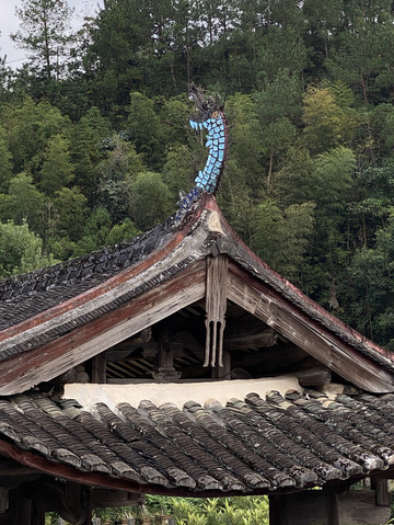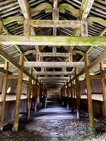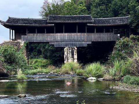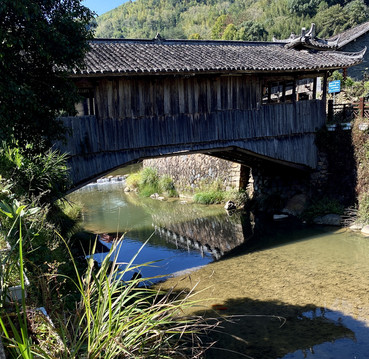 在村尾,见到了护龙桥,为简支木平梁廊桥,气势明显不如拱桥,特色不是很明显,此桥始建于清嘉庆二十五年(1820),全长27.75米,净跨7米,高2.15米。