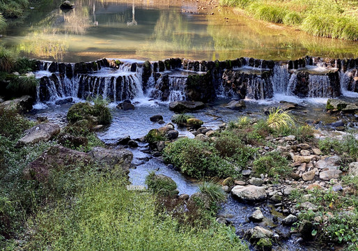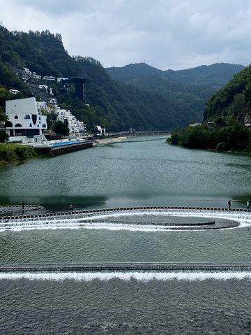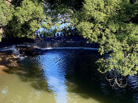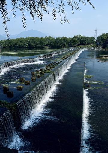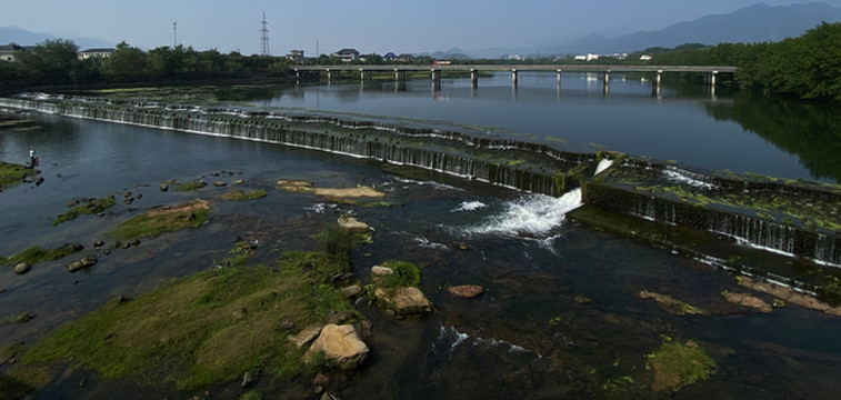 廊桥边是始建于明朝的午羊堰,气势宏大,是松古灌区的一处历史遗存,至今仍发挥着“通借圳基”引水灌溉作用。
