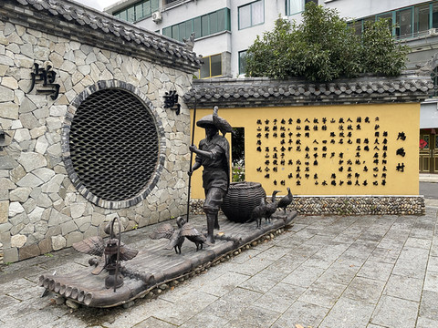 回到村里参观古民居,发现大都残破不堪,在一家看着以前是大户人家的住宅中遇到一位大妈,闲聊中说起此宅乃其爷爷所建,现在政府开发旅游,所有老房子都会加以修缮。问起为何叫鸬鹚的乡名时,大妈说不出所以然。在村口看到鸬鹚村的雕塑和简介,通过剥落不全的文字大概了解,是因马仙娘娘的父亲以鸬鹚捕鱼为生,故而以“鸬鹚”名之。