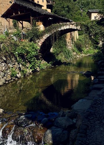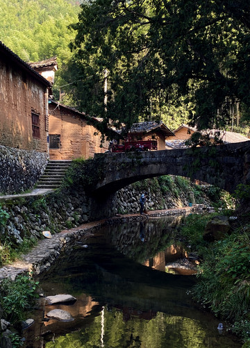 刚到村口,映入眼帘的是一座古朴的石拱小桥,在青苔和藤曼的包裹中静静地守护着流失的岁月。