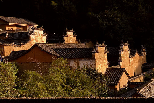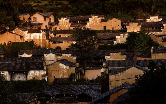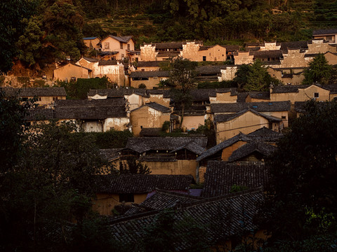 随着太阳慢慢降下,光线越来越柔和,对面村子泥黄的墙面逐渐变得金黄,美轮美奂。