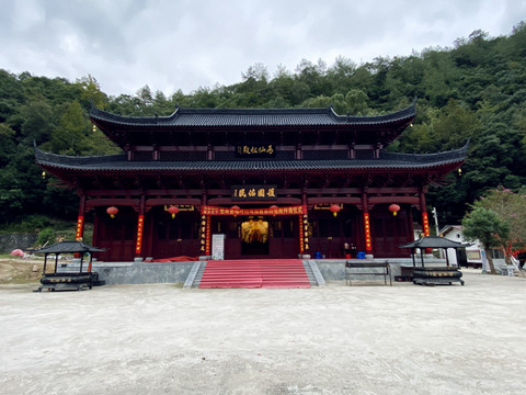 据清同治版《景宁县志》记载:“马孝仙屋,在三都卢山(亦称横山)村岭后,建于明万历年间(1573—1620),原为茅屋,后建为祠。”(1912)遭受水淹后几经翻修重建,1952年的大水再次把鸬鹚殿湮没。我们看到的马仙祖殿为近年新修而成。在祖殿匾额之下,一块“护国佑民”的大匾十分醒目,祖殿内马仙娘娘造像非常高大,面容慈祥而恬静,殿内雕梁画栋,彩绘精美。