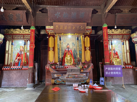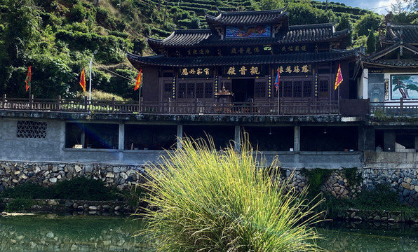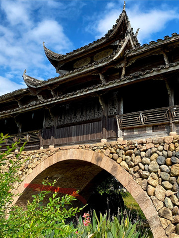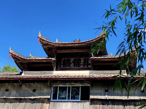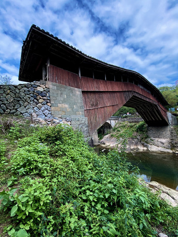 来到又一座被“莫兰蒂”台风摧毁过重建的文兴桥,修旧如旧,保持了桥独特的左右不对称结构。文兴桥始建于咸丰七年(1857年),全桥长40.2米,宽5米,除了一边高一边低的独特结构,文兴桥中供奉着三国时期“ 桃园 结义”的刘关张也是少见,一般来说,处州、 温州 、闽东地区的廊桥供奉观音、临水夫人居多。
