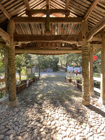 到了壶镇,岩下石头村是必去的地方。岩下村村民以朱姓为主。据《朱氏宗谱》载,始祖朱国器公在五代梁太祖期间,曾任山东淄州刺史,后贬至温州永嘉任司户。 北宋太平兴国四年(979年),朱国器次子朱时周游猎至括苍,乐其山水秀奇,从温州迁徙卜居南田村。明建文三年(1401年),朱氏18世孙朱谨之转徙岩下村,依百丈岩而得名。