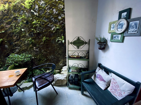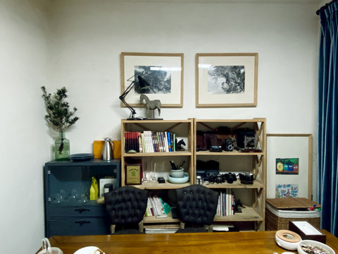 民宿就在村中路旁,门头简洁也不大,开门进去却是艺术气息扑面而至,整体呈现清新简约的美式田园风,随处可见绿植点缀,浅色系的木质家具以及绘有花鸟鱼虫的装饰画让这里淡雅温馨。店主吴先生见我们是嘉兴人,连说好巧,他曾在嘉兴创业生活多年,后来才回乡经营这个民宿,妻子也是嘉兴人,至今哥哥还在嘉兴从事摄影工作,真是缘分呐!问起民宿的装饰,他说父亲是摄影师,影响了一家人从事艺术工作,民宿的照片、绘画和老相机等藏品均出自家人之手,真是不错。