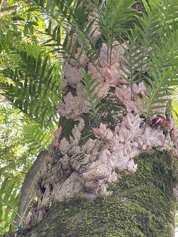 今天预订的民宿居然在城边一个山坡上,穿过曲折巷子冲上至少20度的一个斜坡才把车停好,起亚的商务车还是软了点,轮胎都冒烟了,把同行之人吓的不轻,哈哈。这个民宿有点意思,原来是一个菌菇研究所,可俯瞰县城景色,环境幽静,院中植有不少大树,店主还在空地搞了一个三角梅花园,非常漂亮。