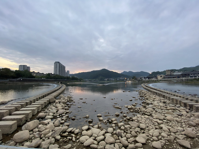 途径大均乡悬崖上的天空之城(那云度假村),看到一座非常雄壮的大廊桥,本想在度假村之内的溪中碇步桥拍桥,却被度假村门卫告知需要185元门票才能进入,简直抢钱啊,直接放弃,从另一头找到小路下到卵石密布的溪中。