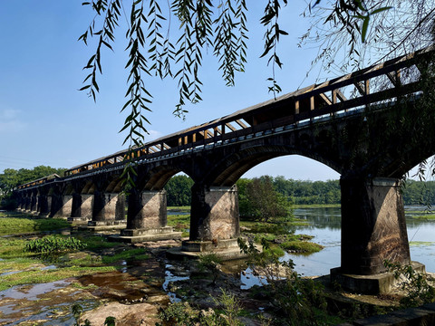 清晨起来,步行700米,来到好溪旁的贤母桥。贤母桥建于清嘉庆二十三年(1818),现存《贤母桥,吕蔡氏建》、《三桥碑记》、《书贤母桥碑后》碑记,立于贤母桥西桥头,碑文主要记载壶镇大户吕载扬兄弟子侄听命吕蔡氏母遗嘱,建造贤母、继义、竞爽三桥,叙述乐善好施的事迹。贤母桥为联孔石拱桥,东西走向,是台婺交通孔道桥梁之一。原桥长67丈,宽1丈,13孔,后经两次混凝土灌浆加固和拓宽改建,桥拱用条石平置纵联砌筑,桥面两侧设石望柱、拦板,现桥长137.4米,宽6.8米,高7.8米,孔跨8.55米,观之非常壮观。