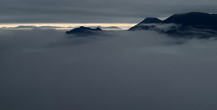 有道是心诚则灵,第二天5:15分闹钟惊醒,往窗外一看果然晴天,隐约中天边有一抹亮色,赶紧起床简单洗漱一下就出门来到上面七星墩观景台,朦胧中已经有几个人在了。