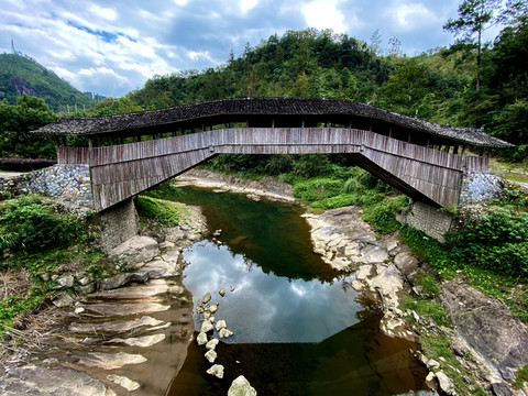 紧挨着马坑的东坑镇是景宁廊桥最密布的区域,有两座木拱廊桥:东坑上桥和东坑下桥,一南一北横跨溪上,遥相呼应,被称作“姊妹双桥”。